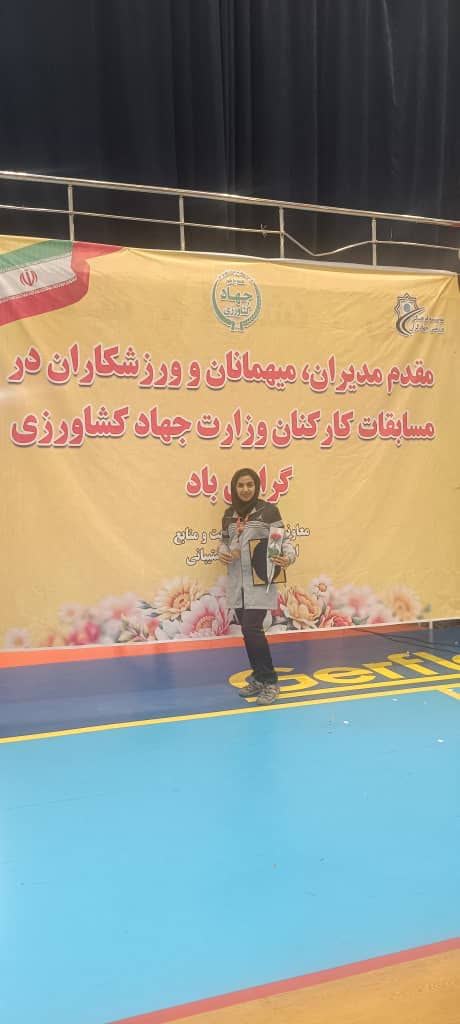 پریسا محمدی کارشناس امور مالی اداره کل دامپزشکی استان اصفهان مقام سوم سومین جشنواره فرهنگی و ورزشی بانوان وزارت جهاد کشاورزی کشور را کسب کرد.